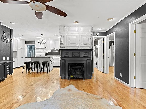 Your dream home is here! This timeless property boasts recent updates throughout the entirety of the home, you won’t want to miss it. Upon arrival you will appreciate the covered front porch offering safety and curb appeal with adorable porch railings. Step in to the inviting living area and entry space featuring a stylish built-in entertainment center and cozy gas fireplace. You’ll seamlessly transition from living space to the charming kitchen where updated cabinets and a dreamy chandelier make cooking and entertaining a great experience for all! In each bedroom you’ll find the ample space to relax after a long day or even set up a home office. In the back of the home there is a cute boho flex space to be used as an enclosed patio, extra living space, or it was previously used as a home theatre! The shop behind the home offers extra storage for your needs. Don’t miss out on this charming property. Schedule your showing now!!!