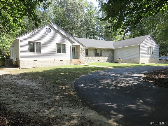 This expansive ranch style home is beautifully positioned on a 1.164 acre Henrico County lot and offers two master suites! You'll be impressed by the park-like setting and the paved circular driveway that offers easy maneuverability and ample parking. Hardwood floors welcome you in the foyer and extend through the spacious living room and into the formal dining room! Adore the well designed family room with its stone fireplace, cathedral ceiling and skylights. To the kitchen/ dining area that also boasts hardwoods along with solid-surface countertops, a six burner gas range, wine cooler, compactor, two ovens a pantry and more! The main master suite provides TWO full baths and an enormous walk-in closet. Two more bedrooms and another full bath are at this end of the house while at the other, you'll find suite number two! There's an enclosed porch that leads to an open-air deck and the three car garage is incredible (benches and shelving stay)! Enjoy the privacy and tranquility afforded by the wooded lot, a separate detached deck, and the charming pond with waterfall in the back yard! A piece of paradise with easy access to downtown Richmond, Williamsburg, New Kent wineries and more!