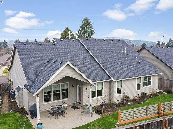 Style and practicality unite with this beautiful open concept 3 bed, 2 bath, den/office, over 2,000 sq/ft home. Located in desired Hayden Bridge neighborhood, this home offers plenty of space to host gatherings. Showcasing a 3 car garage, loads of storage, an office/den, a fireplace, and a large and open living room/kitchen. Enjoy warm summer days on a covered patio while viewing fruit + flowers in the well-manicured backyard of this dreamy home. A greenbelt is across the street and a bike path is located steps from this home. BBQ gas hook up in the back. Back-up generator hookup in garage. Energy star appliances and more!