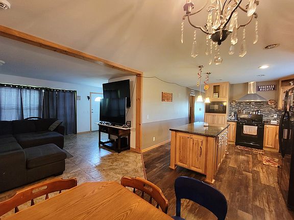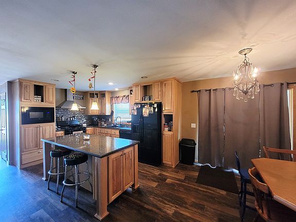 One level living in this well-maintained manufactured home located in the Rainbow Estates subdivision. The home has a beautiful knotty hickory kitchen with mosaic tile backsplash, gas stove, double door refrigerator, dishwasher, microwave, and breakfast bar/island. The kitchen opens to the dining area that has sliding glass doors to the covered patio and living room. The home has a master suite, 2 full-size bedrooms, and a bonus 3rd bedroom/office (this room was added off the living room and could be removed to enlarge the living area if desired). This home also has an amazing laundry/mud with a utility sink, and additional hickory cabinets. The backyard is fenced with a covered patio, firepit, and shed. The almost 9000 sq.' lot leaves plenty of room for parking or to build outbuildings. This home is FHA financeable and move-in ready. Please give us a call today to see this home. All figures are +/- and all information provided is deemed reliable but is not guaranteed and should be independently verified.