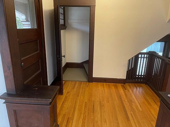 Original wood work wainscoting with hardwoods in living room and dining room. Pantry between dining room and kitchen. Stacking laundry machines. Basement and attic included. Great project room in attic. Upstairs porch overlooking street. Garden shared between residents. New stainless fridge and gas cooking stove in recently redone kitchen. Owner pays garbage and lawn care/ Tenant pays electric, gas, water, cable