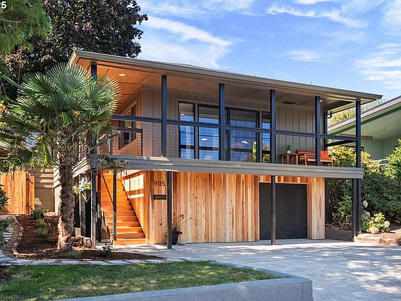 Perched on the east side of Mt. Tabor, this stunning mid-century home captures an unobstructed view of Mt. Hood. Thoughtfully renovated with all-new electrical, plumbing, HVAC and roof, it balances comfort with timeless design. Inside is a masterclass in woodwork and a completely reimagined kitchen. All three bathrooms have been renovated with heated floors for added luxury. Expansive windows bathe the home in natural light. This home is an entertainer’s dream! A Doug Fir porch for sunset happy hours, a cedar back deck, and an outdoor fireplace create multiple spaces for year-round entertaining. Modern conveniences include a tankless water heater, EV charger, and a tuck-under garage, with access to the lower level, offering potential for multigenerational living, or guest quarters. A rare offering that fuses timeless architectural appeal with modern upgrades in one of Portland’s most iconic neighborhoods, located 3 blocks from the trailhead of Mt Tabor park.