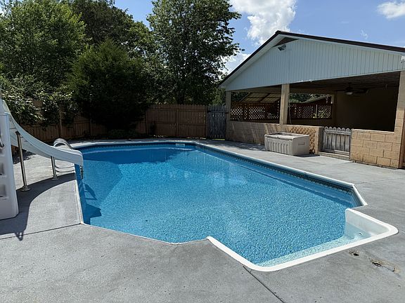 Step outside to your own private oasis, where you'll find an in-ground saltwater pool surrounded by beautiful outdoor space—perfect for entertaining, relaxing, or simply enjoying the sunshine. The expansive yard offers room to roam, and a large detached garage with a convenient storage attic, plus a covered carport, provide ample parking and storage options. Lots of room in the backyard for your own garden.