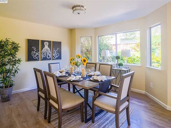 Beautiful home in the desirable New Castle community of San Ramon. Quiet and convenient location. Close to schools, library, city center and shopping. Gated community park and pool. Easy I680 access. Very bright home with vaulted ceilings. Large living room with fireplace. formal dining room. Spacious kitchen with rich color cabinet, granite counter tops and stainless steel appliances. Light filled breakfast area. Super large upstairs master suite with mirror door closet and dual sink vanity. Two other bedrooms are large and bright. All bathrooms are recently updated. New laminate floors. New wall to wall carpet. New interior paint. Newer driveway. Large and private backyard with trees and bushes. A great starter home!