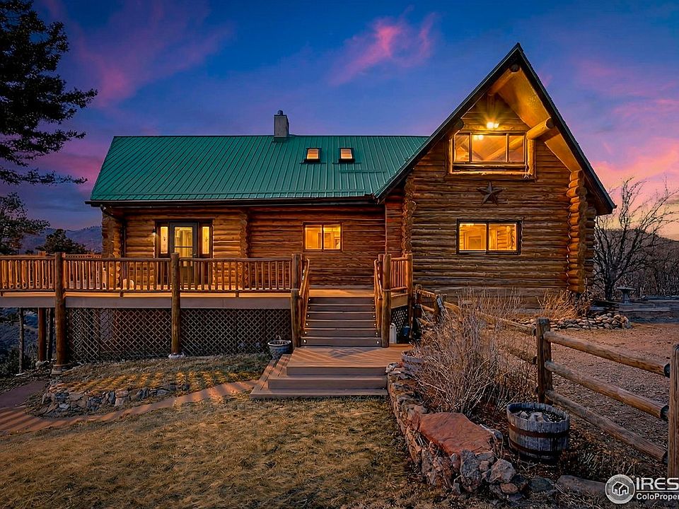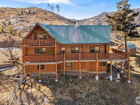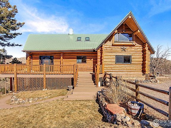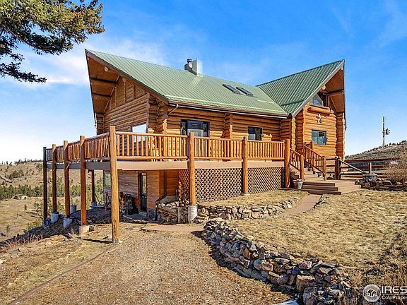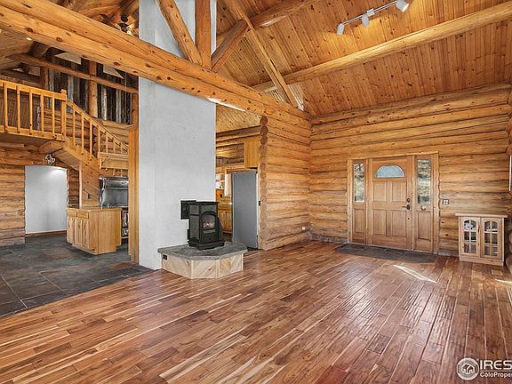 Live the quintessential Colorado lifestyle without boundaries. Set on 35 expansive acres that directly abut National Forest land, this property offers not just a home, but an endless backyard for hiking, hunting, and exploring. The residence itself is a beautiful 4-bedroom Swedish cope log home featuring a wrap-around Trex deck designed to capture 360-degree mountain views. Inside, the high-end tongue and groove pine and lofted ceilings surround you. The gourmet kitchen is a chef's command center, featuring stainless steel appliances and a professional-grade Heartland 6-burner gas stove. The layout includes a main-floor guest wing with two bedrooms, a walk-out basement with a cozy wood stove, and a top-floor primary suite with a private balcony overlooking your vast acreage. In addition to two wood stoves, the home also has two high-efficiency Steffes room heaters and a propane powered Generac generator for peace of mind if electric supply is interrupted. Outside, you'll enjoy a ~650 Sq.Ft. outbuilding with concrete floor, a garden shed steps from the home, and an RV pad with electric hookup. While the home is a warm and inviting shell, it allows you to cross the finish line on your own terms: a propane hook-up is already in place and ready for a furnace, and cosmetic finishes await your personal touch. Located in the Foothills for unmatched privacy and only 25 minutes from Vern's Place and a short drive to Old Town Fort Collins.