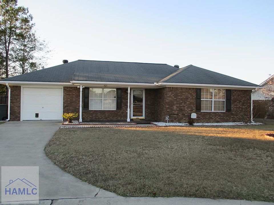 Welcome to this charming all brick ranch style home in Churchfield Estates. This 3-bedroom, 2-bath home is nestled in a cul-de-sac just minutes from Ft. Stewart. Upon entering, you'll find newer luxury vinyl plank flooring in the living room and hallway, complemented by vaulted ceilings. The full kitchen features tiled floors and an eat-in breakfast area. You can step right outside the kitchen area through the french doors to the patio for some relaxation. All bedrooms have newer carpet with ceiling fans. Additional features include washer/dryer hookups, a privacy-fenced backyard with a shed for extra storage, and a single-car garage. Perfect for investors, or future homeowners, as it is tenant-occupied until December 2024. *Please note, pictures were taken before current tenant moved in.