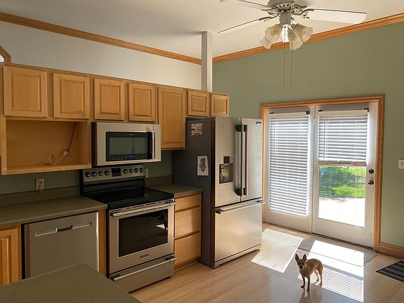 This house was originally built in the 1920s and has a wonderful old-world feeling. With high ceilings and a fenced backyard, it has plenty of open space right in the heart of Spearfish. Many local restaurants are right within walking distance as well as the university. If you have a question about pets, we accept them on a case-by-case basis. Please let us know and we can see if your pet will work, but we do require a $200 non-refundable animal fee if your pet is accepted. The two smaller bedrooms share an adjoining bathroom. The basement is finished and has a separate room for the half bath and the laundry room. The yard has space for gardening in the summer and a young pear tree we have been growing in the front yard. It also has a two-car garage. The back deck has a clear and beautiful view out to Lookout Mountain during sunsets. One year is required.