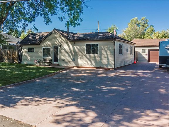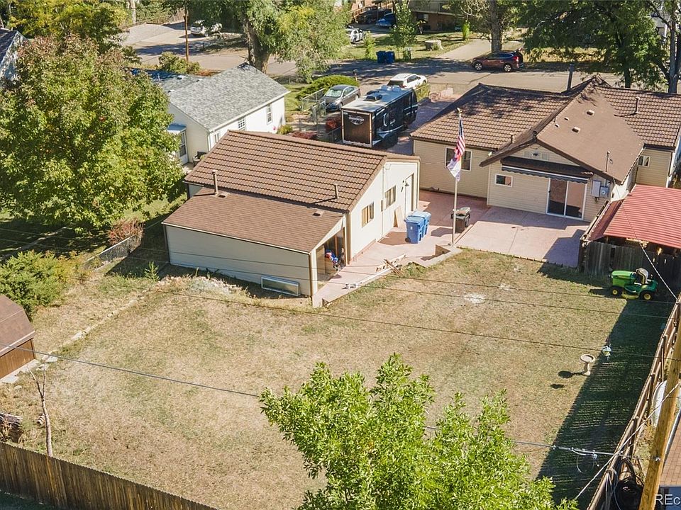 This charming, one-level-living abode was supposed to be this seller’s forever home. Famous last words, right? Well, you get to enjoy the fruits of his many updates and upgrades including the kitchen and both bathrooms, luxury vinyl flooring, interior doors and trim, windows, smart lighting, smart thermostat, security cameras, an outsized concrete driveway, a large back patio with retractable awning, and a lifetime steel roof and even a very tall flagpole! Your living room, which is big enough for a formal dining area too, includes voice-controlled lighting, a built-in bookshelf, and a wood-burning fireplace. The huge kitchen is endowed with an abundance of counter space and clear alder(?) cabinets voice controlled can lighting, new, quality stainless-steel appliances, and a once-you've-had-it-you-can't live-without-it kitchen TV, and room for a breakfast table. Besides two, large bedrooms, one with an ensuite 3/4 bath, the 3rd bedroom is perfect for an office or, if you need 3 bedrooms, another smaller room now used as a storage room is big enough for an office as well. The large, garden-ready backyard is fully fenced, and the front yard, also fenced, is the greenest in the neighborhood. The oversized, heated garage is a mechanic’s/woodworker’s dream including the workbench and floor drain, plus there’s a large storage shed added on the back of the garage and another, detached utility shed. The location allows quick access to downtown (12 minutes) and to the mountains via 6th Avenue Freeway. Plus, Colorado Mills and Denver West Village are right up the street. Just 45 minutes to world-class skiing at Loveland Ski area. And this 1/3 acre property's zoning allows for ADU or duplex, a value-add at no extra cost!