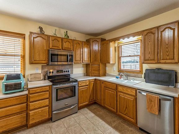 3BR home with Large kitchen, tile floors, pantry, lots of counter space, eating area, & SS Appliances! Dining room w/hardwood floors, Spacious updated Full Bath w/ dual head tiled walk-in shower, a jacuzzi Tub & dual sink vanities, brick fireplace in Living room. Hardwood Floors upstairs, updated windows. Lower level consists of Family room, bar, plenty of storage space, & a room for second Bath! All Appliances stay! Yard has lots to offer as most is fenced in with privacy fence, many plantings to enjoy. Dreaming of a larger garage? Look no further w/ heated garage 24'X30' (per assessor) Make this your new home today!