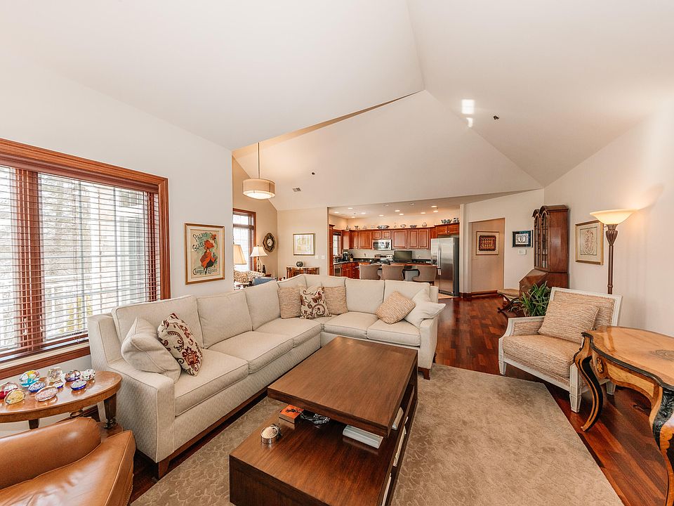 STUNNING AND SOPHISTICATED! LUXURY CONDO BOASTS SOARING CEILINGS, GLEAMING BRAZILIAN CHERRY FLOORS AND OPEN CONCEPT LIVING. KITCHEN AREA WITH CABINETS GALORE, GRANITE COUNTERS, STAINLESS STEEL APPLIANCES AND ISLAND WITH SNACK BAR. LIVING ROOM FEATURES CATHEDRAL CEILING AND GAS FIREPLACE WITH MARBLE SURROUNDS. DINING AREA OFFERS GENEROUS SPACE TO ENTERTAIN AND OPENS TO BALCONY. SPACIOUS MASTER SUITE WITH DRAMATIC PALLADIAN WINDOW, WALK-IN CLOSET AND GORGEOUS MASTER BATHROOM WITH DOUBLE SINK VANITY, SHOWER STALL AND SPA TUB. BEDROOM 2 HAS CUSTOM BUILT-INS. THIS CORNER UNIT IS FULL OF LIGHT AND PRIVACY.
