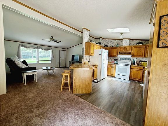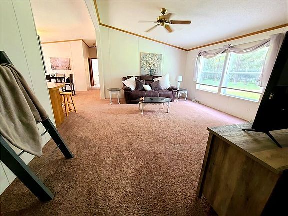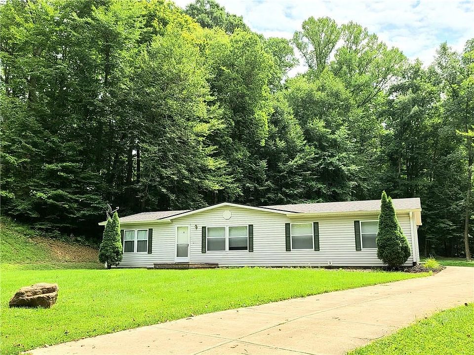 A cathedral of tall trees guard this 3 bedroom, 2 bath ranch on 5 majestic acres with meandering creek. Beautiful sun-lit living room, spacious kitchen w/all appliances, curved breakfast bar for entertaining & tons of cabinetry, dining room overlooking the back deck, delightful master suite w/walk-in closet & large private bath w/garden tub & sep shower, big bedrooms, newer flooring and skylights. Then walk outside to enjoy the large pole barn and 2-car detached garage for all of your hobbies, animals or both. Country living at it's finest!!