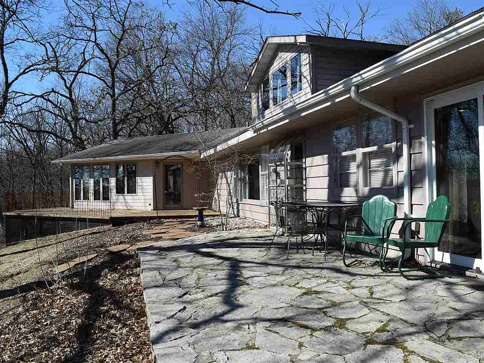 Wooded retreat on the edge of Oregon!! 3 bed, 3 bath home is on 6.39 MOL acres of woods and prairie. Large eat-in kitchen w/breakfast bar, built-in bench seating and hickory cabinets. Glass doors open onto the wraparound stone patio. Stone steps take you down to back yard and fire pit. Living room has wood burning fireplace w/stone hearth and surround, built-in shelving and is open to the dining room. Wood floors in both main floor bedrooms. Master suite has custom maple closets throughout, generous sitting area and private bath. 23'x17' three season room w/hot tub and skylights has windows on three sides overlooking wood deck and dense woods. Large utility/mud with washer & dryer and utility sink just off the attached garage. Cedar exterior.