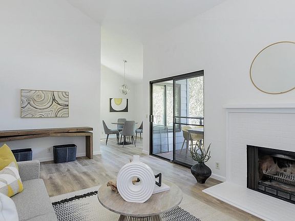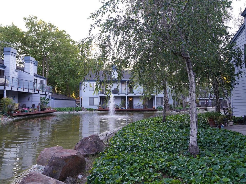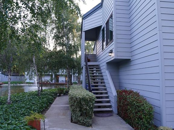 Updated throughout, this highly desirable 3-bdrm upstairs condo in a building of only 4-condos was once the model home for the development. On the market for the first time, this home boasts of new flooring & carpet, stainless steel kitchen appliances, cabinets w/pullout pantry & shelves, marble countertop, & new sink/faucet. The 2-full baths have been rejuvenated & offer a crisp, clean look & feel. This like-new lock-up-and-go condo has indoor full-size W/D, energy-efficient radiant heat, fresh paint throughout, fireplace for cozy nights, mostly double-pane windows, tranquil views of the lagoon-like meandering pond, and a one-car detached garage plus one dedicated parking space. Stellar MV location! 10/minute bike ride to Top 10 workplaces: Googleplex, LinkedIn, Symantec, Synopsys to name a few. The shuttle stops in front of the complex. Rounding out the amenities are the private pool, hot tub, tennis courts, & community garden.