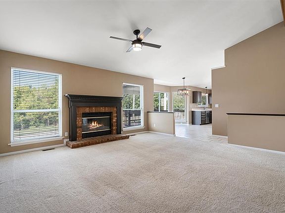 Approx 2,700 sq ft of Finished Living Space is absolutely charming! Great curb appeal is enhanced by Newly Landscaped front yard, a Brick & Vinyl elevation with 2 Car Garage, Newer Garage Door & Newer Roof & Gutters. The Large Foyer with Tile Flooring Entry leads you into a Vaulted Great Room complete with cozy Gas Fireplace with Brick Surround & Newer Ceiling Fan. The Kitchen has Ceramic Tile Flooring & Stainless Steel Appliances including Gas Stove/Oven, Plant Shelf, Pantry & Center Island. Head through the Breakfast Room & out the sliding door to your 10'x11' Covered Deck with Ceiling Fan, that overlooks the backyard with Newer Vinyl Fencing. The Vaulted Main Floor Master Suite has a Sunburst Window, Ceiling Fan, 2 Closets & Full Bath with Dual Sinks, Tile Floor, Tub & Separate Shower. The Finished LL has a 28'x21' Family Room, & 22'x12' Rec Room Area, 14'x11' Sleeping Room, & Full Bath with Tile Floor. Also features Main Floor Laundry. New furnace was installed on 10/25/19.