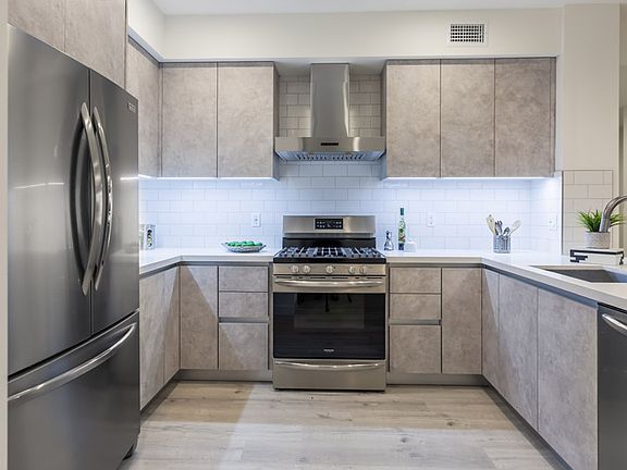 Modern & luxurious 2 bedroom, 2 bath unit available on the 3rd floor in this 4-story, 17 unit apartment building at 1290 square feet. Unit comes with custom kitchen cabinetry, quartz stone counter-tops, and stainless steel appliances. Elegant bathrooms and large living room spaces make this apartment home a dream. Washer & dryer inside each unit. Unit also comes with a balcony and 1 parking spot in the underground garage (included in rent / no additional monthly parking fee).