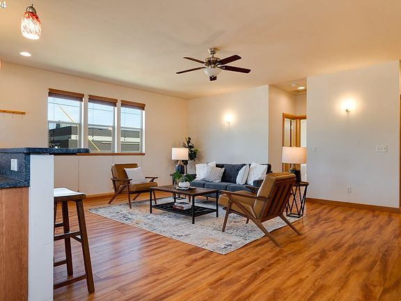Have you been searching for a home for under $600,000 within close proximity to downtown Hood River? This delightful 2 bedroom, 2 bathroom residence is perfectly situated on a spacious corner lot and move-in ready!Step inside to discover a bright and inviting living space, featuring large windows that flood the rooms with natural light. The open-concept design seamlessly connects the living, dining, and kitchen areas, making it ideal for entertaining guests or enjoying cozy evenings at home.The modern kitchen boasts stainless steel appliances, ample counter space, and stylish cabinetry, ensuring a delightful cooking experience.The primary bedroom is complete with an en-suite bathroom, while the second bedroom is equally spacious and can serve as a comfortable guest room or a versatile home office.Outside, the fully fenced corner lot is equipped with a patio and deck for soaking up the Hood River summer sun.With its prime location, you're just minutes away from downtown's shops, restaurants, and recreational activities. Enjoy the best of Hood River living in this delightful home that combines comfort, style, and convenience.
