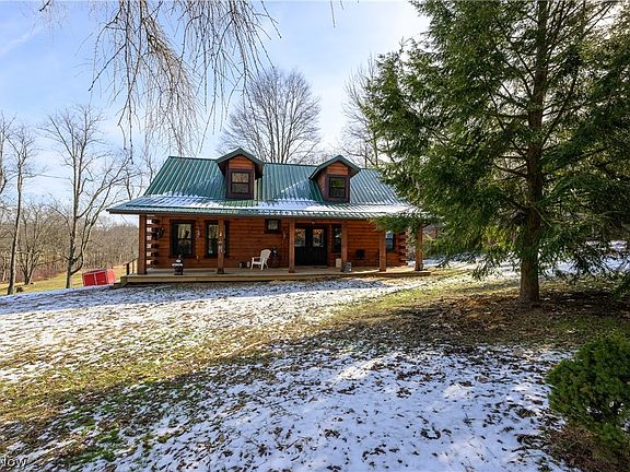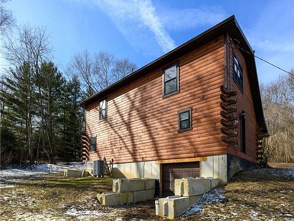 Welcome to your own private retreat. Secluded and quiet with nothing but wild life & woods. All of this nestled on 2 acres. Step into the most pristine home which was built in 2021 by Michael Amos Construction. This log cabin features open concept living with vaulted ceilings & skylights for all the natural light to shine in. With this open floor plan you will find conveniently located on the main level a master bedroom & full bathroom with shower, while there are 2 additional bedrooms and a full bath that reside on the second floor. Cozy living room with fireplace. Beautiful kitchen with eat in island area and open to the dining room. First floor laundry room.