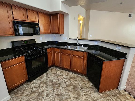 2 bedroom, 2 bath, 1322 sq. ft. ground floor condo with an attached 2 car tandem garage in the Triana North Homeowners Association in Reno. Large kitchen with breakfast bar and open floor plan. Front patio area and patio off kitchen and master bedroom. Laundry room with shelves and full-size washer/dryer. Master bath has dual sinks, a garden tub, a walk-in shower, and a large walk-in closet. Community pool, spa, and BBQ area. 12 month lease. No smoking. No dogs. Cleaning fee: $350.
