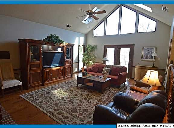 **Call Larry Webb, 901-409-5478** Beautiful Lakefront Home! This fantastic one-level home boasts an excellent floor plan, spacious rooms, hardwood floors, 4 Bedrooms, 2 full baths and 2-1/2 Baths, situated on a 1.90 acre lot overlooking 3 1/2 acre shared lake in a wonderful quiet, established neighborhood. Step into the Entry of this home and the hardwood floors flow into the sunken Great Room and the Dining Room. The Great Room has a soaring vaulted ceiling, a wonderful view of the lake, and a large masonry wood burning fireplace. The Kitchen includes built-in oven, smooth cook top, dishwasher, breakfast bar, and a Breakfast Room with built-in desk and bayed window. The Master Bedroom has an en suite Bath where you'll find his n' her sinks, 6ft whirlpool tub, and separate shower. This home also includes an over-sized two-car garage, 16x12 screened patio, a large deck, and a dock. Recently installed tankless hot water heater for energy savings, along with new larger leaf-guard gutters to accommodate size of roof.