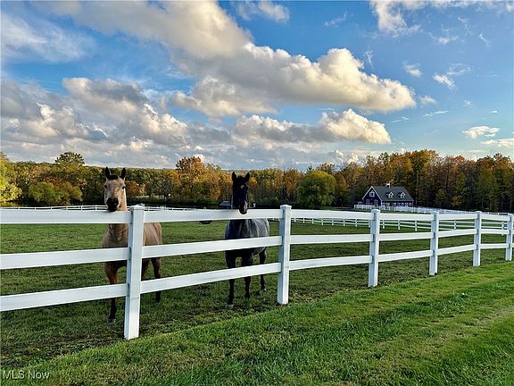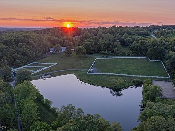 Tucked away on 33 pristine acres of rolling hills and pastoral beauty, this extraordinary equestrian estate has been reimagined for the modern lifestyle, blending timeless charm with elevated design at every turn. Thoughtfully transformed from the ground up, the residence offers the rare opportunity to live luxuriously while immersed in nature. Inside, bespoke finishes, and artful architectural details set the tone, while expansive windows frame sweeping views of pasture, woodland, and water, inviting the outdoors into every room. The heart of the home is the open-concept hearth room which flows seamlessly onto a stamped concrete patio designed for al fresco entertaining under the stars. Just beyond, a stone walkway leads to a lower terrace and private waterfall, an idyllic perch for golden hour views. The kitchen is a showpiece in itself, anchored by an oversized island, quartz counters, and custom cabinetry. The first-floor primary suite is a true sanctuary, complete with vaulted ceilings, dual spa-like bathrooms, and a lofted walk-in closet. Upstairs, three spacious guest suites offer privacy and comfort, while the finished lower level features a media room, fitness space, and ample storage. Outside, equestrian enthusiasts will appreciate the 4-stall barn with heated tack room and hot/cold wash rack, along with a large outdoor riding arena. Spanning 33 acres, this property includes 27 acres of forested land with trails for horseback riding or ATVs. The property backs up to the Holden Arboretum, and a nearby equestrian center provides access to an indoor riding arena and an additional 900 acres of riding trails. The renovation spanned two years from 2021-23. Highlights include new septic, a new asphalt driveway, new roof and gutters, a new well pump, new lighting, all new windows and patio doors. Offering the perfect balance of luxury and land, this estate delivers an unmatched lifestyle for today’s modern equestrian.