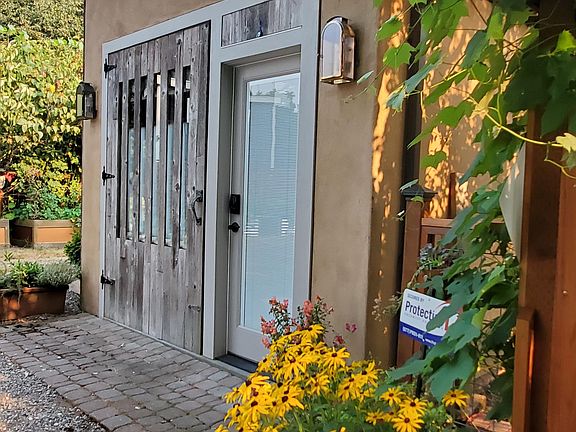 MY GREENWOOD COTTAGE Charming yet modern, detached cottage located within walking distance to Greenwood central and shopping, dining and night life. No one above you or beside you making noise! One bedroom (fits queen bed), fabulous bathroom and shower, loft ceilings in main living/entertaining room and in quiet bedroom. PLUS...storage on second floor makes for convenience in living minimally with your rarely needed belongings tucked safely above! Elegant lighting, top kitchen appliances, washer and dryer, private parking, and warm and friendly neighbors in this single dwelling neighborhood. Indoor and outdoor living with unique swing out front door. Grow your own veggies and flowers in planter boxes belonging to the cottage resident. Don't miss out on the opportunity to free yourself from those monstrous, noisy apartment towers! NOTE: cottage is unfurnished. Listing photos show how others have furnished as an example of how one might live in this charmer. Landlord provides, water, garbage, compost, and recycling. Tenant provides electricity, WIFI/Cable. Small dog and/or cat permitted with deposit.