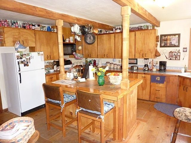 - Fireplace features: wood stove