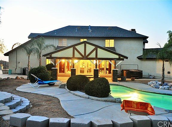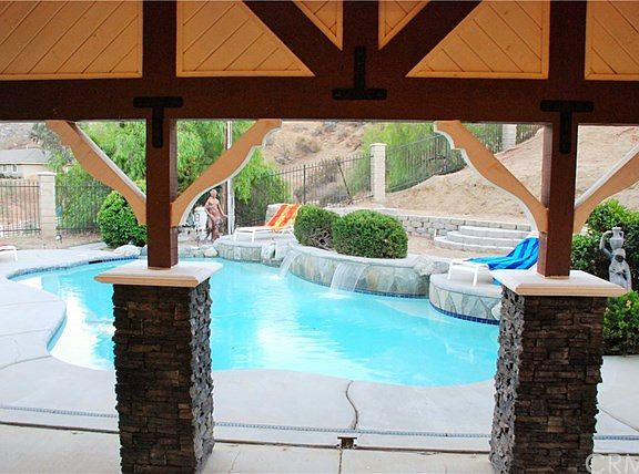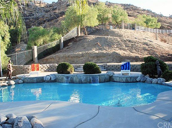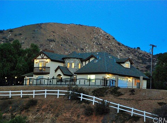 H U G E PRICE REDUCTION! and, Seller Financing Available. Experience the life you've always desired. This is an executive style, horse property, offering both casual and formal spaces with highly up-graded features. Past the courtyard you will find the front door, opening to the grand foyer. Italian marble flooring with spanish marble accents in the great room, foyer, wet bar, and formal dining room. The main level has a great floorplan with a formal living room, a family room, great room, formal dining room, wet bar, full bathroom, laundry room with laundry shoot, office or 4th bedroom, kitchen and large breakfast room. The second floor has two large bedrooms with walk-in-closets, a full bathroom, master bedroom with huge retreat area and private balcony, fireplace, and a large bathroom.The grounds are accessed from the double gates and the main property is fenced with wrought iron fencing. The area designated for horses is on the lower plateau. In the rear of the house is the covered patio and the beautiful pool with cascading sheer water falls. All this set against the backdrop of majestic hills with views stretching across the canyon and beyond.