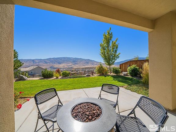 Superb living in one of Northwest Reno’s most popular communities! Proudly poised on an idyllic street within the popular master planned community of Somersett, this sprawling 4-bed, 3.5-bath estate boasts noticeable pride of ownership, inside and out. Originally purposed as the model home for the development, the interior offers a spacious layout with both a primary residence as well as a full, attached in-law’s quarters – making for a combined total of 2756 sq ft of clean, well-appointed living space., Easily used as an accessory apartment for renters or guests, the in-law suite is located just off the main entrance and boasts a lovely kitchenette, living room, and private bedroom with ensuite bathroom. Situated just down the hall in the primary residence is a light and bright kitchen with sleek dark cabinetry, gorgeous countertops, built-in dishwasher and microwave, and a broad island with sink and additional seating capacity. Adjoining the kitchen is an open concept dining area and living room with large windows and a sliding glass door that opens to the partially covered concrete patio. Benefitting from no rear facing neighbors, the back yard provides spectacular panoramic views of both the valley below and Sierra Mountains in the distance. Highlighting the beautifully kept exterior are two lush green lawns, mature trees and shrubs, and a border of high desert xeriscaping – perfect for anyone who enjoys low-maintenance landscaping. Back inside, head up the winding staircase to discover two inviting guest rooms as well as an impressive master bedroom with tall ceilings, a sliding glass door that opens to a secluded second story balcony, and an expansive ensuite bathroom with dual sinks, garden tub, and separate shower stall. Equally impressive as the property itself is the neighborhood that surrounds. Conveniently located, this home is positioned just down the street from a championship golf course, Town Square shopping and dining destinations, and many walking paths and trail heads. What’s more? The Somersett HOA also includes access to the club house, two pools, hot tub, sauna, gym, and tennis courts. This stunning estate is a rare find and guaranteed to garner a lot of attention, so don’t miss a chance to see it while you still can – schedule your showing today!
