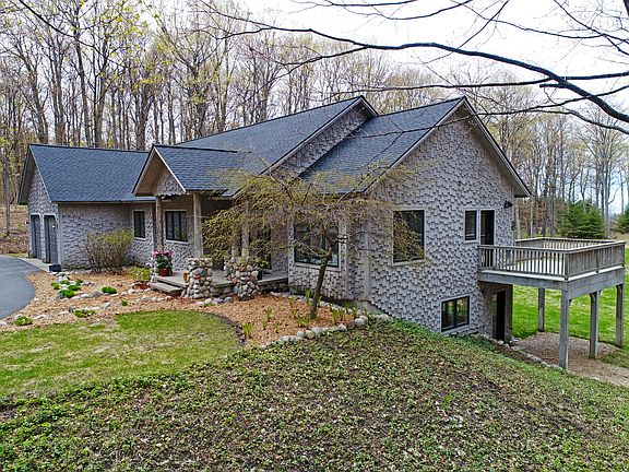 Enjoy Lake MI views & sunsets from the living room of this custom-built 1998 home on 17.9 acres which borders the National Park. The magic begins near the driveway entrance where a centuries-old Indian trail marker tree sets the scene. Meander thru the property on park-like trails, or thru a meadow accented w/ planted wild flowers. The 5 BR home is thoughtfully designed to welcome a large family or just a couple w/its main floor en-suite master w/ BR, bath, & sitting room. Let the peacefulness & beauty of this setting welcome you to a new lifestyle. For a private viewing, call Jeff at 231-632-9070 For realtors we will negotiate a commission