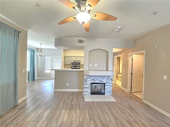 Welcome to this beautifully maintained 1-bedroom, 1-bathroom condo located in the highly sought-after Rhodes Ranch area in Southwest Las Vegas. Nestled within a gated community, this home offers both comfort and convenience. Step inside to discover a bright and open living space featuring stylish wood laminate flooring throughout. The modern kitchen is equipped with sleek stainless steel appliances, perfect for those who love to cook and entertain. This community boasts top-notch amenities, including a refreshing pool, a fully equipped fitness center, and a basketball court, offering the perfect balance of relaxation and recreation. Enjoy easy access to shopping, dining, and entertainment, all within a short drive. Don’t miss out on the opportunity to make this fabulous condo your own!