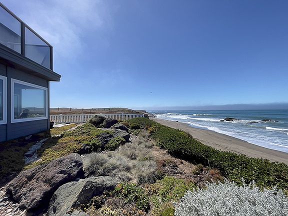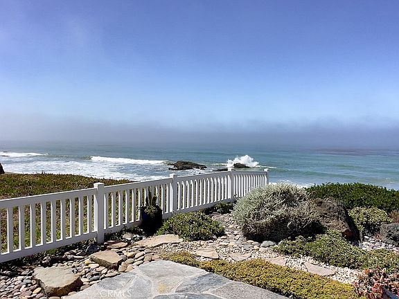 UNIQUE OCEANFRONT CONDO ~ This single-level gem offers unobstructed whitewater views stretching from the San Simeon Bluffs to the Piedras Blancas Lighthouse. The remodeled, open-concept design features custom walnut cabinetry, soapstone countertops, two ensuite primary bedrooms and a convenient half-bath. Enjoy expansive ocean views through large windows, complimented by wood-beamed ceilings, tile floors, and a cozy gas fireplace. Ample storage throughout and bull nose corners, a stackable laundry closet, an alarm system and a new roof. The flagstone patio is protected from the prevailing wind, and invites you to relax and watch the surfing and kite surfers. Two attractive patios off the central hallway are shared spaces but hardly used, and one is completely protected from wind. Experience the beauty of seasonal marine life, including dolphins, seals, occasional elephant seals, and whales, along with breathtaking sunsets. The gorgeous State Park bluff trail is just 30 yards from your door. A pristine, accessible sandy beach welcomes beachcombers to also explore the tide pools. Observe the pelicans and seagulls gracefully glide by at eye level from your condo while waves crash on the sea rocks. Cambria is conveniently two miles south, just the other side of San Simeon State Park, and Big Sur beckons you north. Enjoy coastal living or a second home retreat in this climate refuge, sheltered from the inland heat and smoke, on the most beautiful and protected California coast.