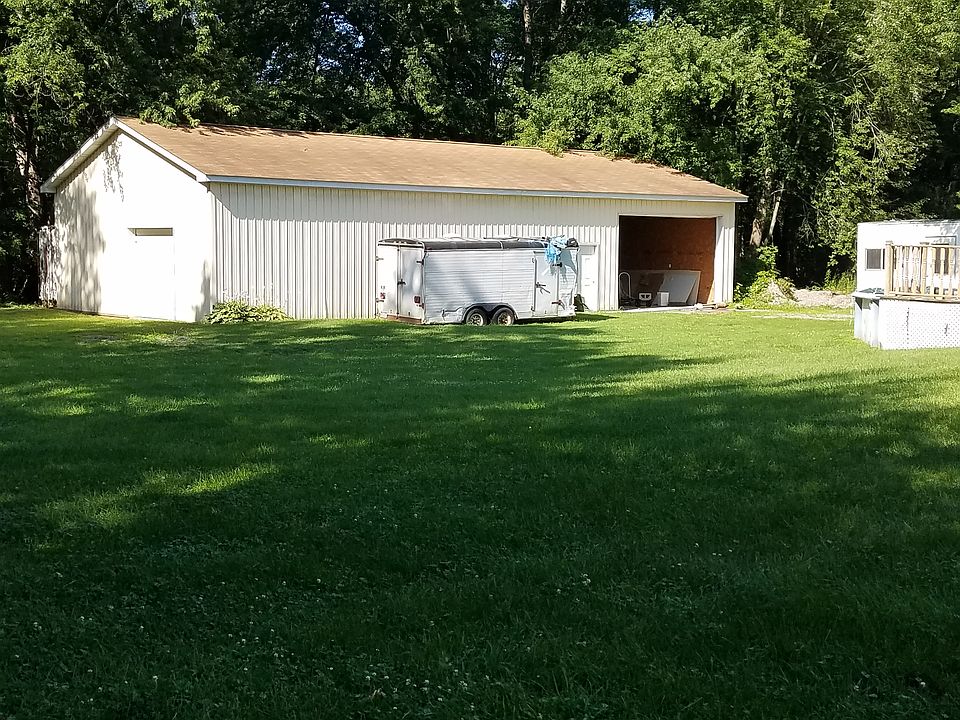 This beautiful home has beautiful oak flooring basement is fully carpeted beautiful ceiling nice beautiful walls beautiful lighting has a 32 x 64 pole barn fully insulated wired nice lighting my see to appreciate