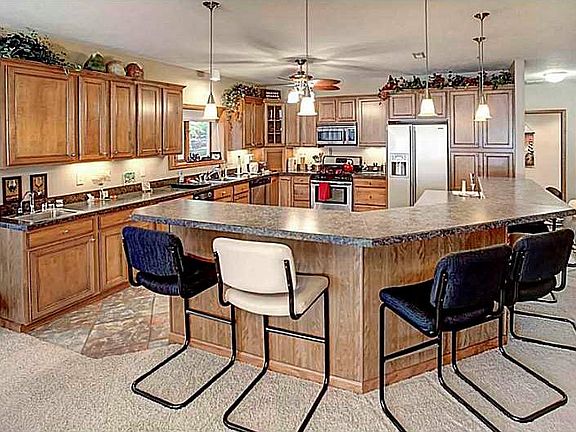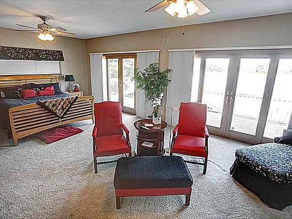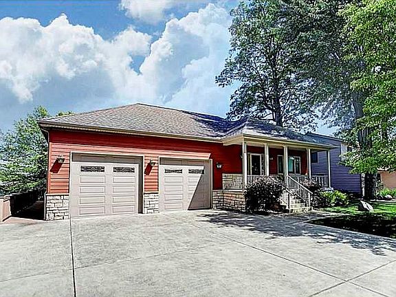 Fabulous, 3 bedroom, 3 bath waterfront home situated on Lakeridge Island. Very open family room/kitchen area w/gas fireplace and awesome view of lake. Gourmet kitchen has large, center island. Huge master bedroom (28x14) w/great master bath w/double sinks and beautiful countertop. Outside features large, trex deck, double covered boat dock w/electric lifts, great landscaping, and more. Home is cement board and stone w/vinyl soffits with canned lights. 25x28 garage has tons of storage, heat, attic access, 14 ft. ceiling, and 10 ft. overhead door. Heating system has split zones so heat and a/c can be shut off to different areas of home. A gorgeous home !!! Don't miss it!!