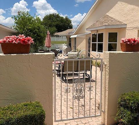 Vaulted ceilings make this spacious great room design expansive. Plenty of room to entertain here! Serve through arch from kitchen to dining room fit for table of 6 or 8. A French door leads to full length enclosed paver patio--the place for wine and cheese starters! At the rear of the home, the expanded lanai/ office has heat & ac, newer windows, and raised floor extending living area into a lovely bright private area. Huge master bedroom with both walk-in and wall closet. Remodeled step in tile shower with seat. Wrap around counter with 2 sinks and decorative mirror. Guest wing has spacious bedroom, huge linen closet, washer dryer in double closet and large guest bath with jetted whirlpool tub. Kitchen has granite gray stainless refrigerator (new), high rise faucet, & more.