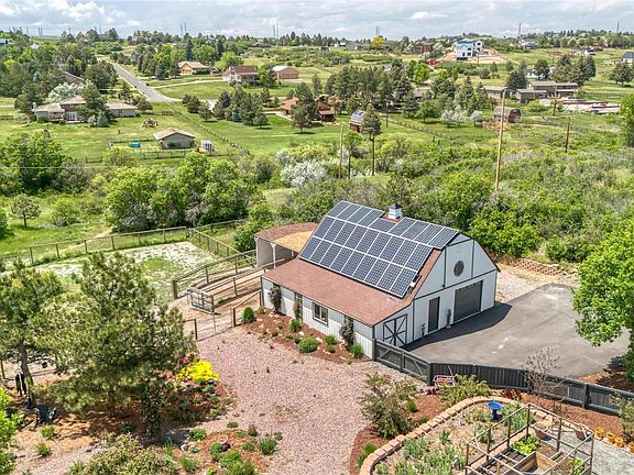 Experience the best of Colorado living in this Beautifully Updated home nestled on 2.4 acres in a sought-after community. With its relaxed country charm, expansive lot, and access to horse and hiking trails, this property offers privacy, serenity, and sweeping views of verdant rolling hills. Thoughtfully updated throughout with refined finishes and a welcoming feel, this spacious home is designed for both everyday comfort and elegant entertaining. The gourmet kitchen features top-of-the-line appliances and flows effortlessly into a spectacular heated and cooled sunroom—perfect for soaking in panoramic views all year long. Just off the kitchen, the inviting dining area with a cozy fireplace easily accommodates large gatherings or intimate evenings by the fire. The Main-floor Primary suite is a true retreat, complete with its own fireplace, spa-like bath with soaking tub and walk-in shower, a private study nook, access to a large deck, and a massive custom walk-in closet. The main living room also captures breathtaking scenery and features another gas fireplace for a warm, inviting ambiance.Downstairs, the fully finished lower level is a haven of flexible space—ideal for a game room, music studio, gym, children’s play area, home office, and more. It includes two additional bedrooms, two bathrooms, and a kitchenette—perfect for guests, multigenerational living, or movie night snacks.Step outside and enjoy the Colorado lifestyle: a spacious patio with firepit, flourishing vegetable garden and flower beds, a play structure, turf lawn plus a multi-use outbuilding with finished garage space/workshop. Your horses are happy with 2 indoor/outdoor runs and covered area, large pasture with direct access to a scenic trail leading to the creek. Surrey Ridge has horse trails, outdoor arenas, access to East/West trail. An exceptional blend of peaceful living, functional luxury, and unforgettable views—truly a one-of-a-kind with many additional features, too many to list.