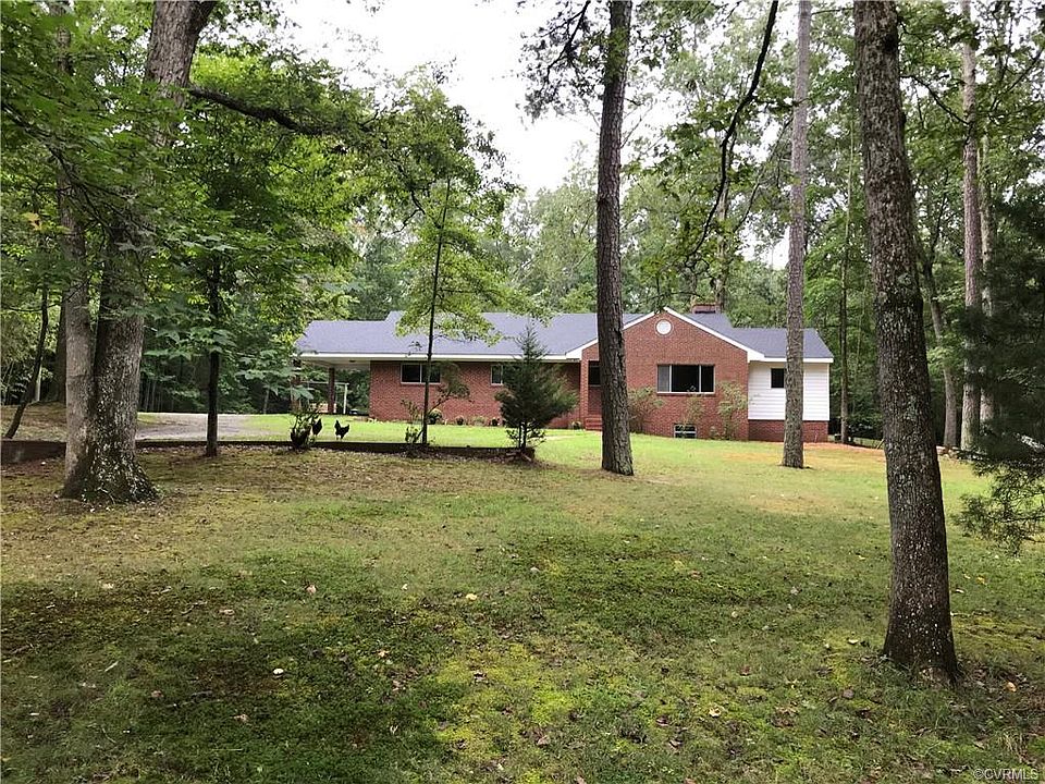 All brick rancher on 10 wooded acres just east of Sliding Hill Rd, new roof & new HVAC, hardwood floors thru most of 1st floor, 3 fireplaces, walk up attic, full basement with rec room & bar, carport and small garage on opposite end. House sells as is. It's habitable but rather dated in kitchen & baths. Lots of space for the $