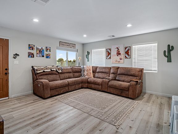 Beautifully renovated ranch style home. Situated on 1+ acre lot that is completely fenced in with block walls and an electric gate. The upgraded kitchen features newer cabinets, quartz countertops and stainless-steel appliances. Attractive, luxury vinyl plank flooring throughout the common areas and carpet plush in the bedrooms. The kitchen and bathrooms were replumbed during the renovation. Primary bedroom includes 2 closets, ceiling fan and ensuite bathroom. Both bathrooms have custom tile showers, upgraded vanities and new light fixtures. Additional updates include newer windows, 2-inch blinds and recessed lighting. Nice sized laundry room with door to the backyard. Outside you'll find a spacious patio, block wall fencing and an access gate to the rear section of the yard. The oversized 2 car garage has tons of extra space for a workshop or storage.
