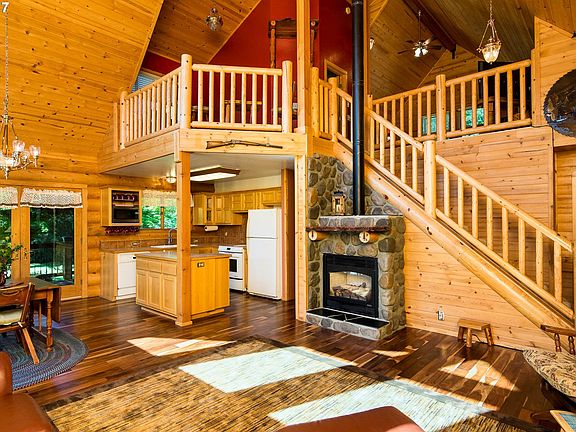 This gem is located off the main road, it is a peaceful setting with mountain views, mature landscaping & adjacent to the Leaburg Canal which is ideal for walking, jogging or biking. Home was constructed with attention to detail & features a river rock fireplace, open floor plan, 2nd story includes a bathroom & spacious loft. Tranquil one of a kind setting! Call for your private viewing.