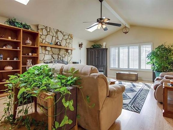 Love natural lighting!? Look no further as this incredibly bright & spacious home sits in the highly desirable neighborhood of Mira Mesa! Home includes A/C, natural gas BBQ, 6 station sprinklers & misters, above ground hot tub, 5 huge skylights, large doggy door for small to medium size animals, dual pane windows and plantation shutters throughout. Updated kitchen.