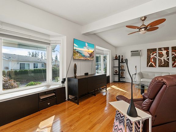 Welcome to this exceptional home in Rainbow Community Estates. This 2-bedroom, 2-bathroom gem is meticulously maintained and move-in ready. This spacious double-wide mobile home features a stylish layout with abundant natural light from large windows and skylights. Enjoy hardwood floors and drywall walls, with updates including windows, remodeled bathrooms, and hot water tank. The bright, enclosed and covered porch is ideal for relaxation. With ample storage and a convenient attached workshop, this property is easy to maintain and perfect for creating your outdoor retreat. The AC and cozy fireplace ensure year-round comfort. No rentals, 40+ community. 2 pets allowed, dogs 14" to the shoulders. Discover how easy it is to love this home.