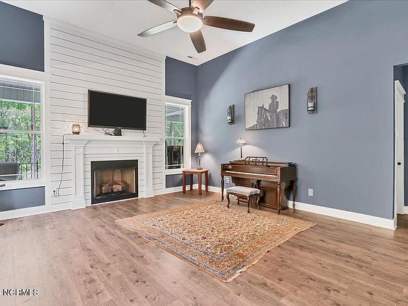 Open concept floor plan with the kitchen island overlooking into the living area. Cathedral ceilings and gas fireplace in the living room. Off the kitchen is the spacious dining room with lots of windows and access to the covered rear porch.