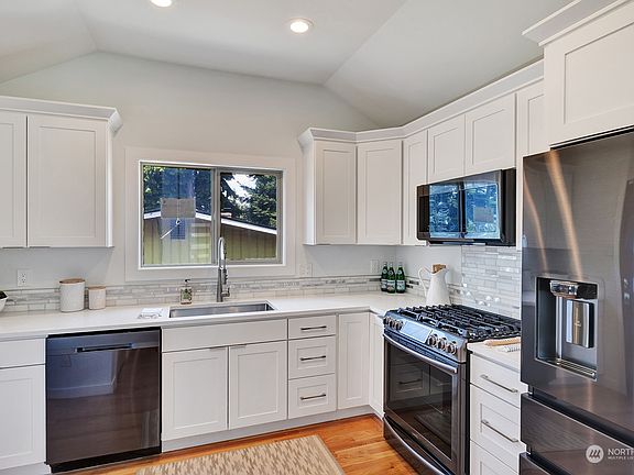 Like new construction (2019), in Licton Springs, near Green Lake/Northgate/Maple Leaf (all ~1mile). 5Br & 6th option rm for Zoom rm/home office + bonus loft area-western views & deck. 3Bth w/tile & quartz + heated floors, 3 patio/decks, & ample on-site prkg. Quality down to the stud remodel w/solid oak flrs on main/upper levels, LED lighting, A/C, low maint turf yard, main suite w/walk-in closet, ensuite Bth: 2 sinks/ walk-in 2x wide shower/ceiling fan w/night light & BT speaker. KIT: quartz counters/new black SS applcs. Downstairs ADU ready. Walk to Robert Eaglestaff MS & Cascadia Elem. Close to NSCC, Light Rail, & I-5. Permitted 2Br/1Bth/gar DADU next door listed separately. Available together as a pkg.Ask listing agent for more details.