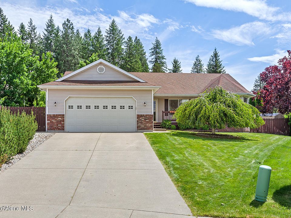 Enjoy peaceful living in this adorable single story home on a cul de sac in a highly sought after community in Hayden! Just a short drive or bike ride to Hayden Lake, multiple golf courses, the County Club, shopping, restaurants and more! Turnkey with an Idyllic open floor plan boasting vaulted ceilings & ample natural light. Engineered hardwood floors, new furnace & A/C, newer stainless appliances including fridge,washer/dryer, & ceiling fans throughout. Granite kitchen counter & extra deep pantry. Spacious master ensuite with dual sinks & tiled walk-in shower. Nice size secondary bedrooms. Views from the adorable covered front porch. Enjoy all seasons in the fully fenced tranquil rear yard w/ a covered patio, privacy & beautiful landscape w/ garden shed. Extra oversized finished garage, easily fits all vehicles, with a storage room. This property has it all!