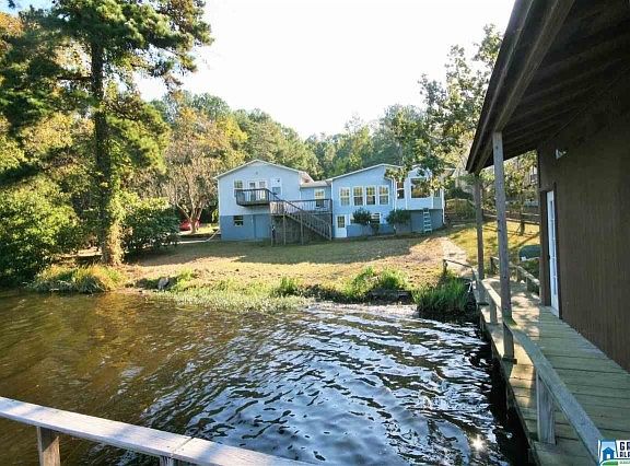 Fish off your own Private Dock!! Or sit on the deck and just enjoy the GORGEOUS VIEW. Enclosed Porch off front of home is cozy and welcoming. The dual colored tile paves the way into the foyer and full bath entering the home. The OPEN Kitchen hosts GRANITE countertops, STAINLESS Appls., New Lighting, while overlooking the Beautiful view of the LAKE. The futon is placed where the Dining Room Table could sit. Double French Doors open to a deck on the side while also overlooking the Lake. There are two bedrooms on the main level. One is being used as a laundry room/office., but could easily be converted back. The Master Bedroom and Bath are only a few steps up. The Master Bedroom is SPACIOUS!!!! It has Neutral Paint two closets, neutral carpet, and French doors leading to a private deck overlooking the lake. The Master bath has a large shower, where the full bath on main level has a jetted tub. This home has tons of character. Boat house , dock, and detached garage across street.
