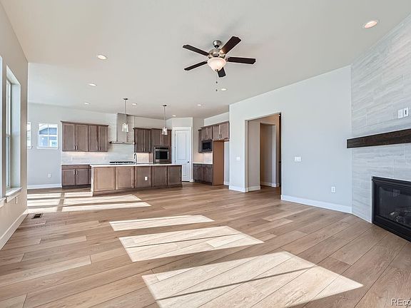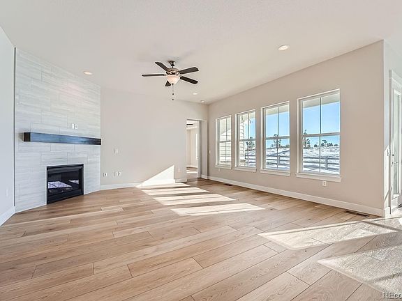 Available NOW!!! Award winning ranch floor plan called C551!! This very desirable ranch home includes 4 spacious bedrooms, 3 full baths, 1 powder baths, dining area, study or craft room with a large finished lower level basement for gatherings with the family. Additionally, 9 foot ceilings are offered in the rec room with full bath and 2 bedrooms with walk in closets plus a 3-car garage. This plan features an open-concept ranch style family room with a full tile fireplace and lots of windows for beautiful natural lighting and the indoor outdoor Colorado life style that leads to a beautiful covered patio space. The well-equipped kitchen overlooks a bright dining area and is enhanced by a large center island and plenty of counter and cabinet space and ample walk-in pantry. Additional features include Smart Home Technology, zone system heating and cooling with Ring camera, fully constructed closets with shoe racks, tankless hot water heater, and front and back landscaping included in purchase price!!