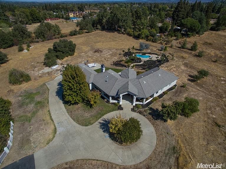 Donald Joseph designed California Company. Custom built single story home situated in 4 secluded acres in the heart of Granite Bay. Home offers 4 bedrooms, office/library, mudroom, pool, and 3 car garage with drive through. Property is designed for horses, small livestock, and sufficient parking for RV/Boats, tractors, and up to 10 cars. Home is equipped with Geo-thermal systems, maple flooring, granite counters, and marble counters and shower in Master bathroom.