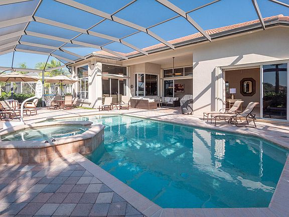 Open and Bright 4BR/3.5BA one story home with 3,271 sq. feet of living space overlooking the Nicklaus designed Heritage Golf Course at The Club at Ibis! Beautiful screen enclosed pool/spa with Southern Exposure on this 1/4 Acre lot. Gorgeous golf/lake views from the home and pool/patio area. Upgraded kitchen cabinets, granite counter tops, double ovens, new cook top and pantry with pull out drawers. Large primary suite with huge closets. Two of the three guest bedrooms have ensuite bathrooms and are full sized suites. 24'' ceramic tile floors set on the diagonal in the main living areas. Both A/C units and pool heater replaced within the last 2-3 years. Entire Interior painted, new window treatments installed, new light fixtures installed in foyer, dining room, kitchen, bath during 2021!