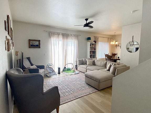 Recently updated townhome. New LVP flooring on main level and bathrooms. New bathroom vanities and light fixtures. Desirable end unit with side gate access to a good size back yard with gravel landscaping and deck. Downstairs laundry with spacious pantry and two car garage. Half bath downstairs for guests and a vaulted entry way. Main suite upstairs with attached bath. Landing features a linen closet and a full size storage closet. Full bathroom and two additional bedrooms. All bedrooms will feature ceiling fans with remotes in time for summer!