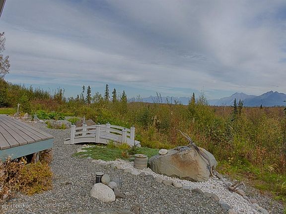 Abundance of Views from Lazy Mountain to Anchorage Glow! This exceptionally well maintained home was built in 2004 on the Bluff overlooking the Chugach Mountain Range. Private Setting with 333 ft. of paved driveway for privacy. Situated in 2652 square feet, this home offers an open floor plan with 3 bedrooms, 2.25 bathrooms with 9' ceilings! The kitchen is large for entertaining with beautiful, extra deep Jurassic Green granite countertops, 42" maple upper cabinetry, center island breakfast bar with gas flat top range, double ovens, triple pantry areas, plenty of storage, track & can lighting. Dining area offers abundance of views from all angles with a coffered ceiling, open living concept with double sliding doors from living room onto the large deck to soak up the views as you relax any time of day! Direct vent gas fireplace, arches into main entry area with coffered ceiling and bedroom quarters. walk through living area with cabinets for storage, countertop for folding and in wall ironing board. Master Suite offers views, can lighting custom ceiling fan, walk in closet, master bath with custom tile work, large Jacuzzi tub with views, walk in shower with glass block, large lighted sink area with granite countertop & separate linen area. Secondary master suite offers Ã,¾ bath, large window for wooded view. Full hearty plank siding. Cedar decking. Central Vac and accessories, all appliances included along with a 50" flat screen with surround sound. Bonus room above 3 car garage with Ã,½ bath, 2 deck areas, one opened one covered ~ Views! Easy to show, Call Today! This one is a Beauty!!! Short notice is possible!