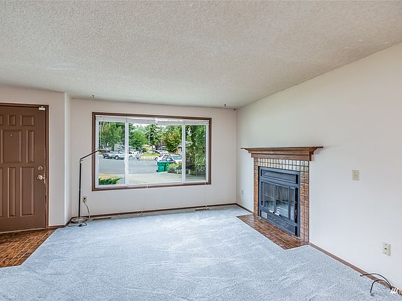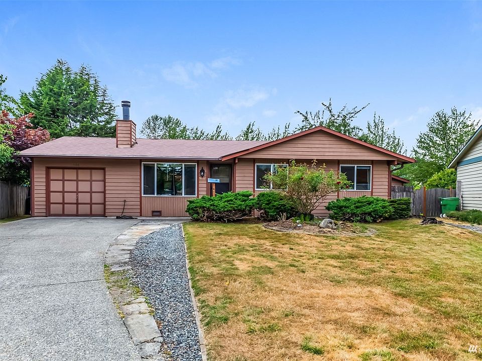 Quiet Cul-de-sac lot, no HOA. BRAND NEW roof with 10 yr transferrable warranty! Tile entry. Brand new carpet & interior paint. Hardwood flrs in kitchen. Plenty of cabinet & countertop space, smooth top range, stainless steel refrigerator & newer microwave. Updated bathroom with tile floors, slab granite vanity and tile surround tub/shower. Wood fireplace. Fully fenced LARGE yard with apple tree, space for sunny garden or just extra room to play. Covered deck newly refinished. Large detached storage shed. Updated double pane vinyl windows. Gas forced air furnace. Attached garage. Extra long driveway for extra parking. All appliances incl. Well maintained neighborhood of homes with convenient access to I-5 & Boeing.